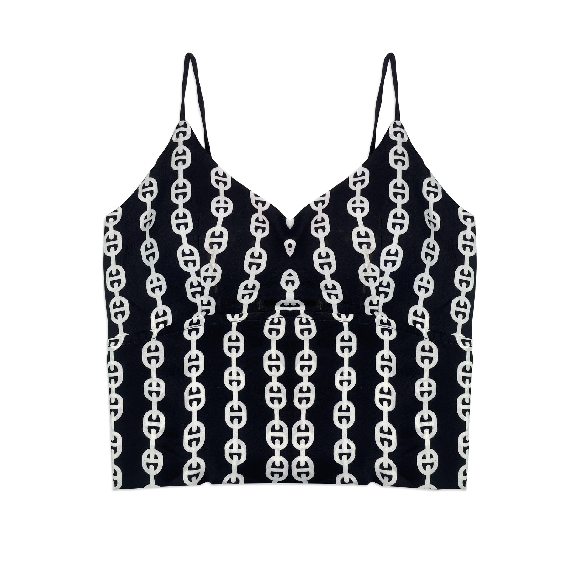 Unleash your bold side with the Chain Muse Bralette – a striking piece that blends edgy aesthetics with everyday comfort. Featuring an all-over vertical chain print on a deep black base, this bralette makes a fearless statement. Designed with delicate straps, subtle ruching at the bust, and a fully smocked back, it offers both structure and stretch for an effortlessly cool fit.