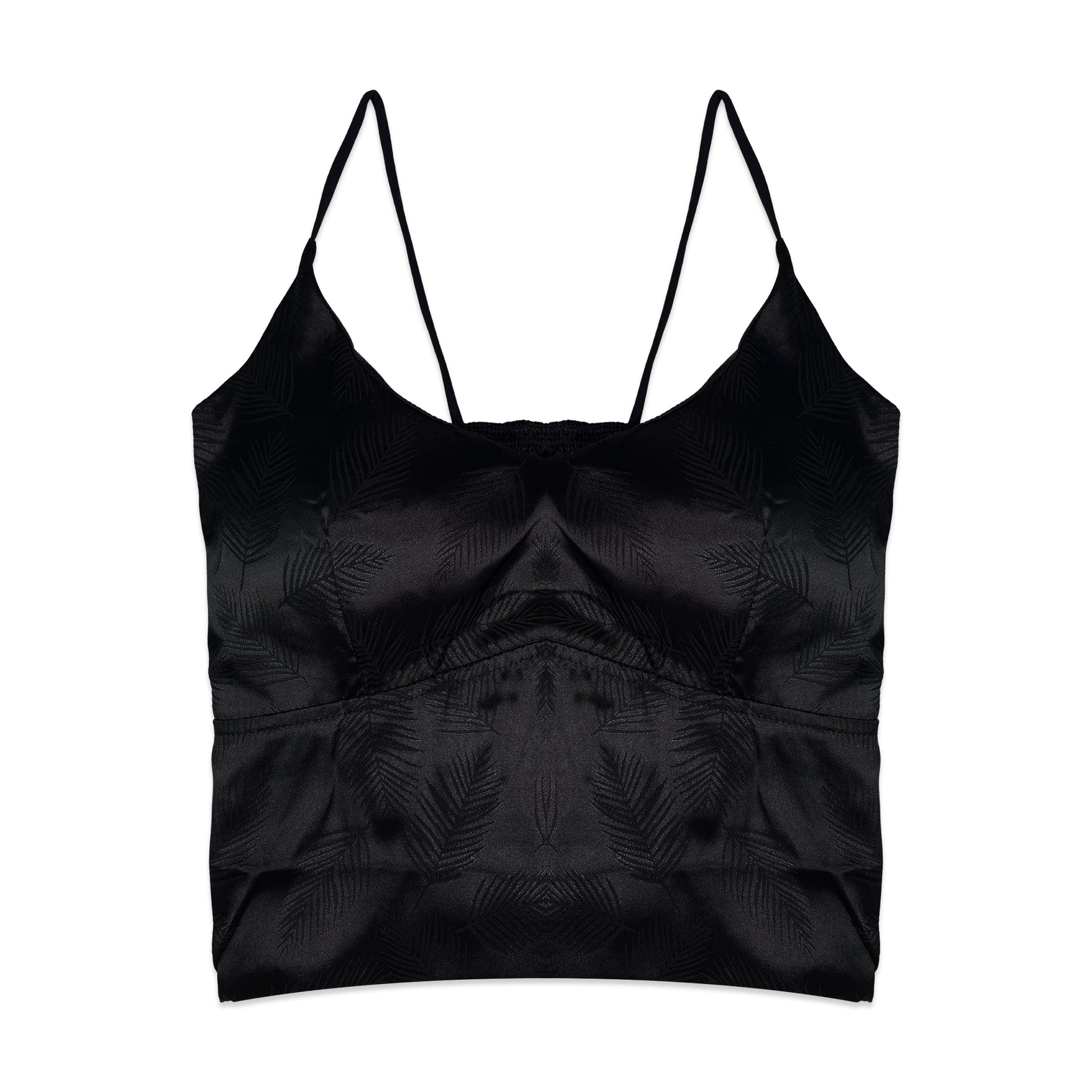Elevate your everyday look with the Velina black crop top. Made from silky soft fabric with a subtle leaf-textured design, this top brings a touch of class to casual wear. The slim spaghetti straps and gentle V neckline offer a light, feminine style, while the stretchable smocked back hugs your body for a snug and comfy fit. Ideal for layering or wearing solo, it’s a versatile piece you’ll keep reaching for.