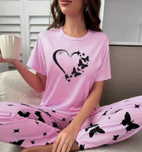 🖤 The black top comes with a sweet “Good Night” print and charming eyelash design, while the satin-feel pink trousers are sprinkled with playful eyelash & heart prints – making you look as dreamy as you feel!